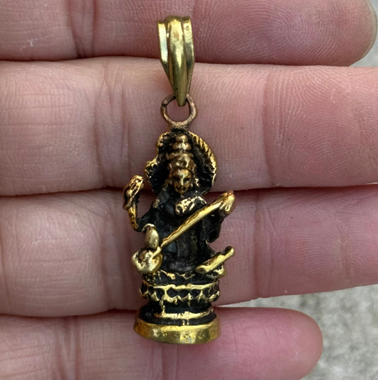 Saraswati Goddess Brass Pendant - Hindu Goddess Of Wisdom And Knowledge