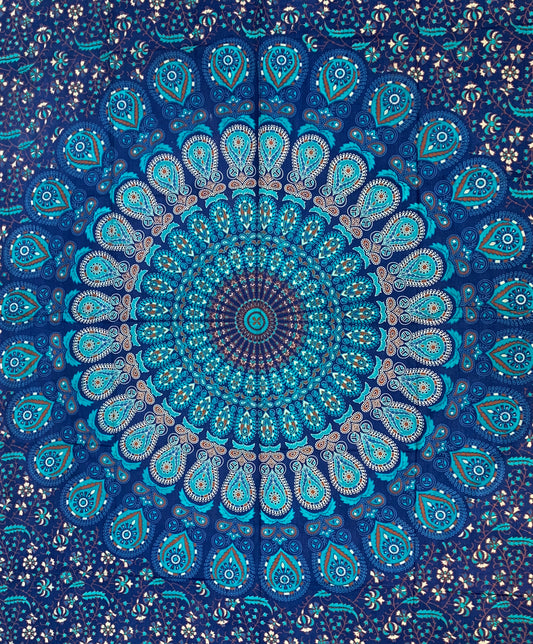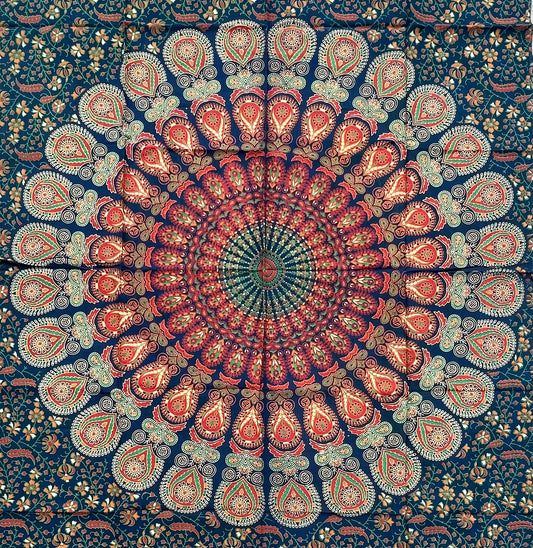 Lotus Mandala Tapestry Wall Hanging Decor 80”X50” Turquoise