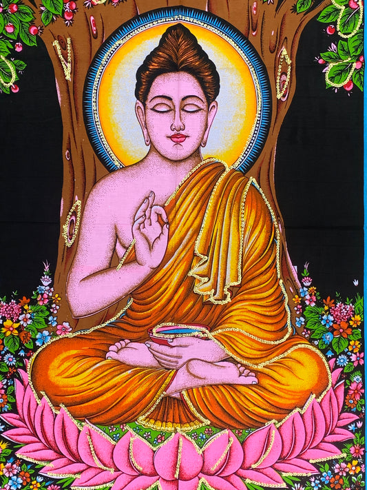Lord Buddha Tapestry Wall Decor Hanging 30" X 43"