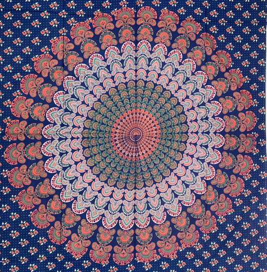 Lotus Mandala Tapestry Wall Hanging Decor 80”X50” Blue