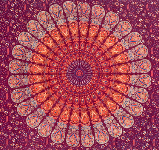 Lotus Mandala Tapestry Wall Hanging Decor 80”X50” Maroon