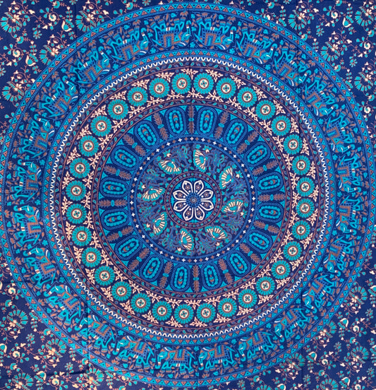 Elephants Mandala Tapestry Wall Decor Hanging 80”X50” Blue