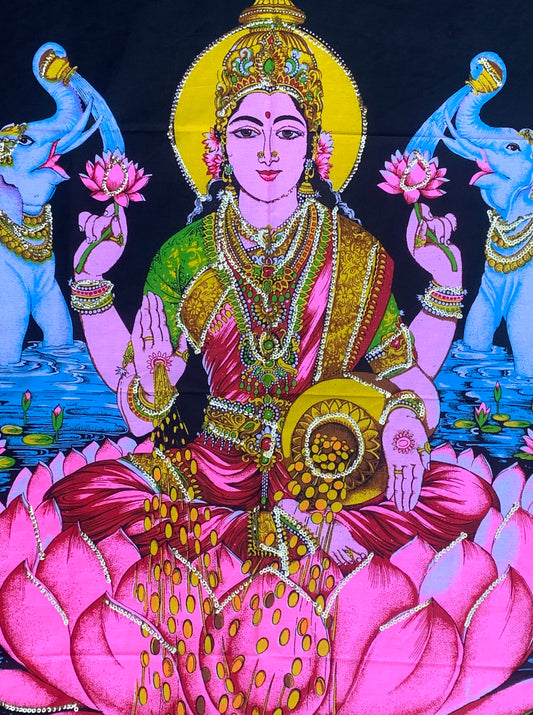 Goddess Laxmi Fabric Tapestry Wall Decor Hanging 43" X30"
