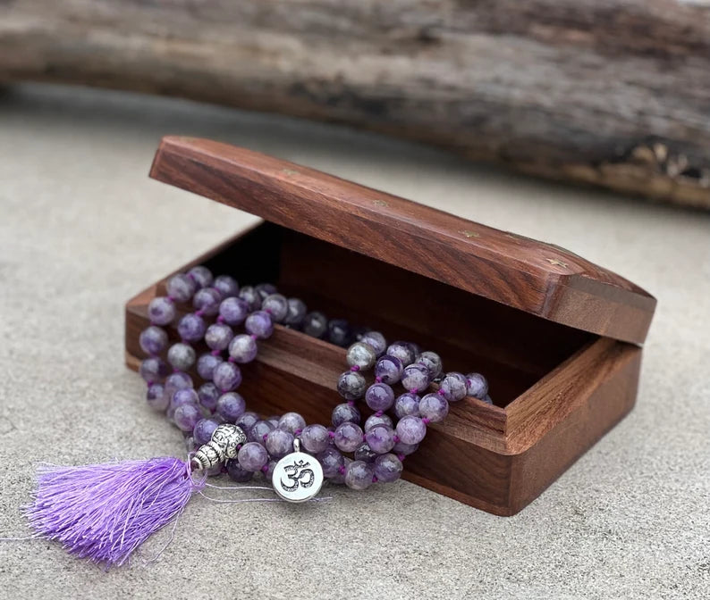 ❤ Price Includes Hand-Picked Mala Gemstone Beads inside a hand-carved Wooden Box to keep the mala safe and clean