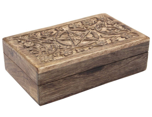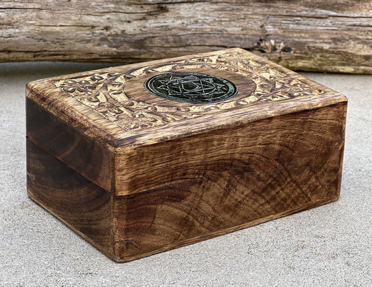 Hand Carved Pentagram Star Wooden Box Keepsake Jewelry Storage