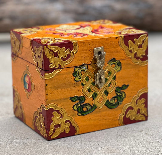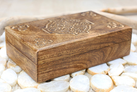 Hand Carved Chakra Wooden Box Keepsake Jewelry Storage