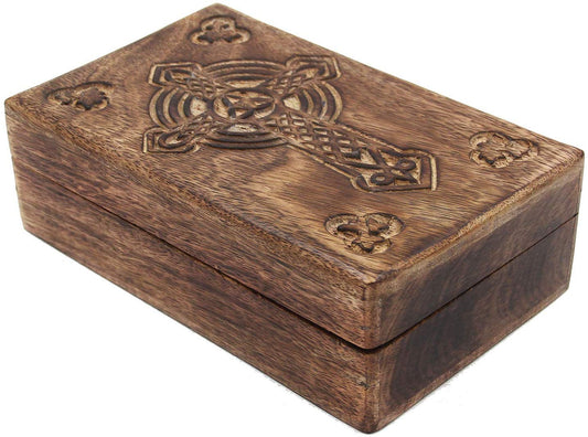 Hand Carved Jewelry Trinket Keepsake Wooden Storage Box (Large, Celtic Cross)