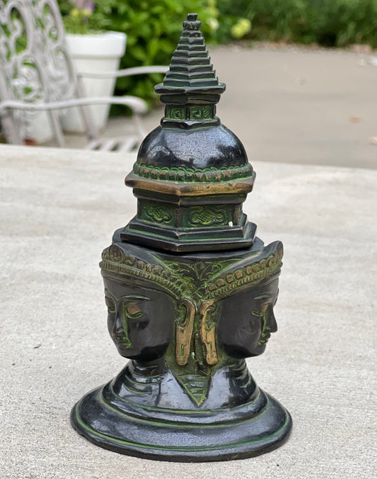 Tibetan Buddhist Old Brass 3 Buddhas Stupa Pagoda 9.5 Inches Tall