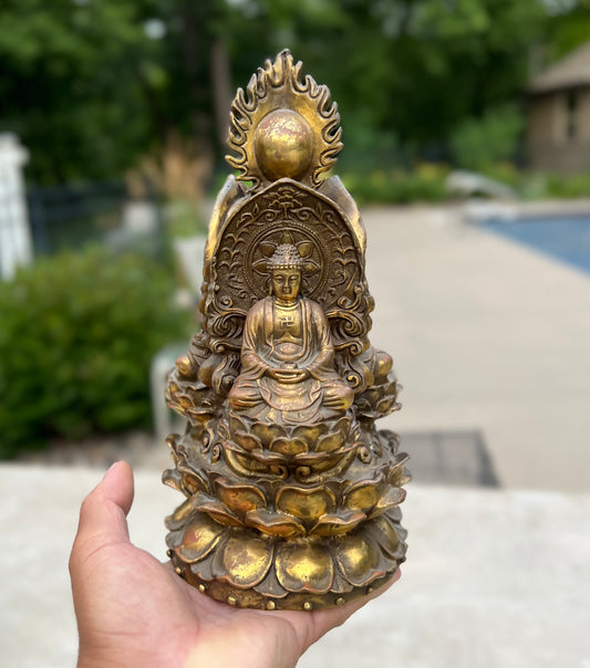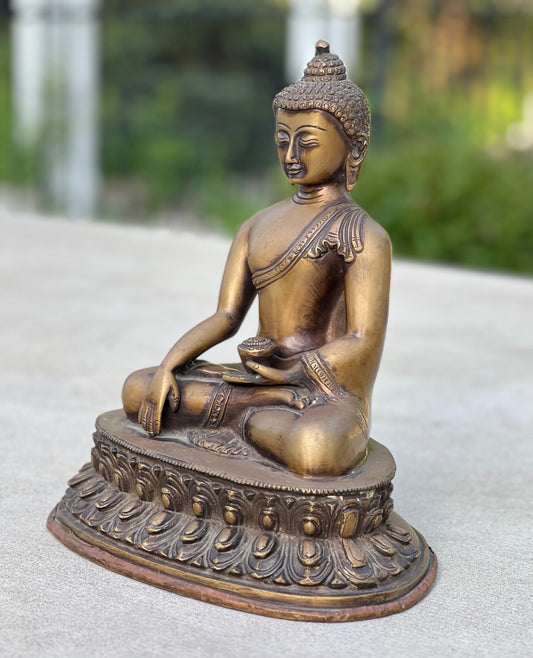 Meditation Buddha Statue Solid Antique Brass for Home Altar Shrine Meditation Room 10 Inches Tall
