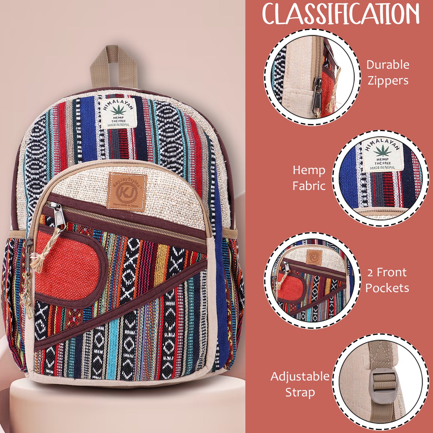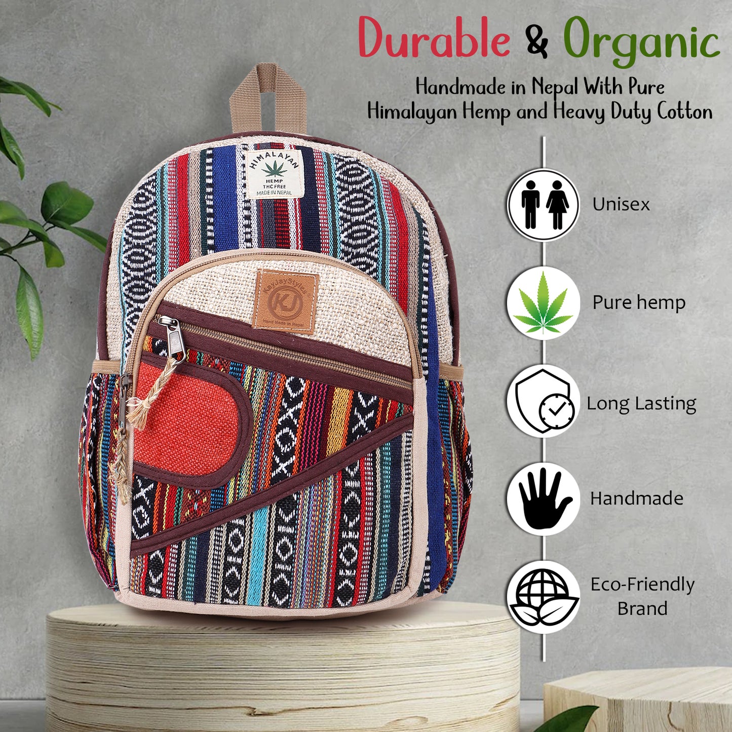 KayJayStyles Handmade Natural Hemp Nepal Backpack Purse for Women & Girls Small Lightweight Daypack