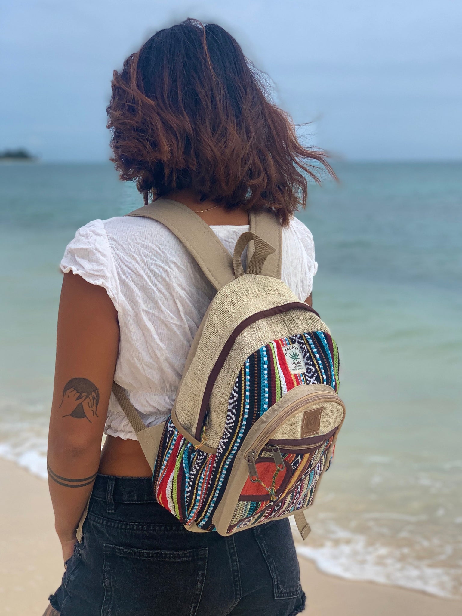 KayJayStyles Handmade Natural Hemp Nepal Backpack Purse for Women & Girls Small Lightweight Daypack